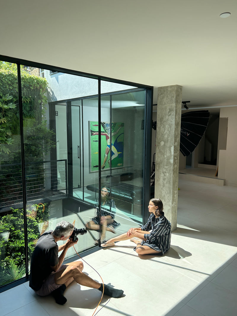 A sleek Modernist house in London provided the backdrop. Light streamed through the glass walls and illuminated the angular geometries. Owned by a globe-trotting female philosopher, the property was populated with exquisite mid-century furniture and artefacts.