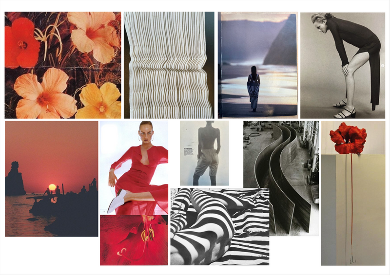 “The exotic heat and curving forms of Patricia Caulfield’s 1964 photograph Hibiscus Flowers inspired me to begin sketching,” shared Yaitte founder Danielle Windsor. The image was pinned on her mood board alongside a print out of Indian artist Sunil Gawde’s metal sculpture A Rush of Blood to the Head (2012) and shots of a free-spirited Amber Valetta from the 90s.