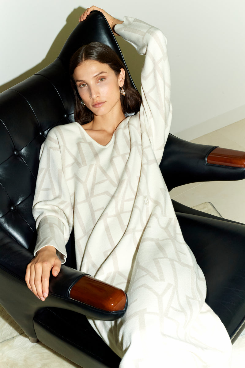 Staying true to Yaitte’s roots, linear stripes and wave-like monograms pattern the collection while exquisite tonal embroidery and debut fabrications introduce a new dimension.